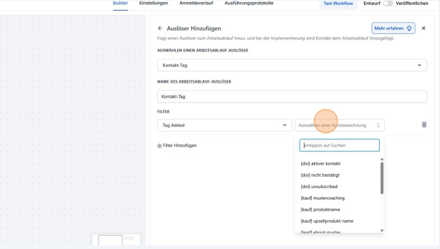 Wähle als Auslöser: „Tag hinzugefügt“.