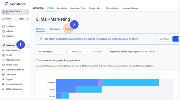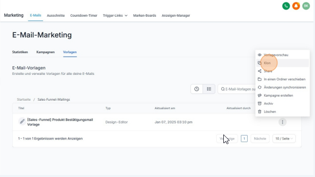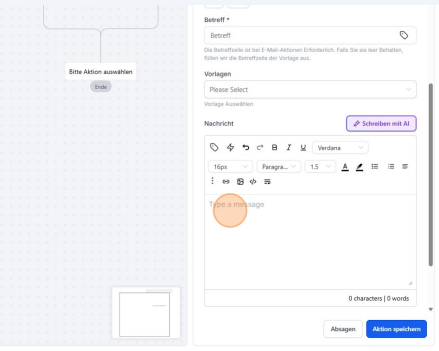 Nutze bereits vorbereitete Templates (z. B. „Follow-up 1“, „Bestätigungsmail A“).