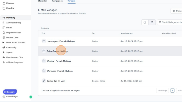 Wähle z. B. „Follow-up 2“ als Vorlage aus.