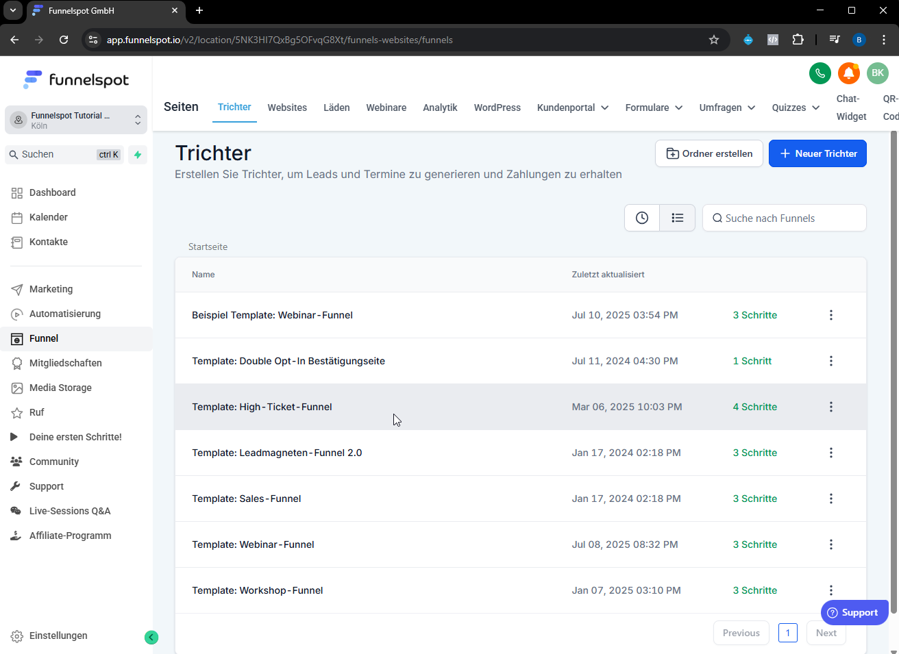 Gehe zum gewünschten Funnel (z. B. „Lead Magnet Funnel“).