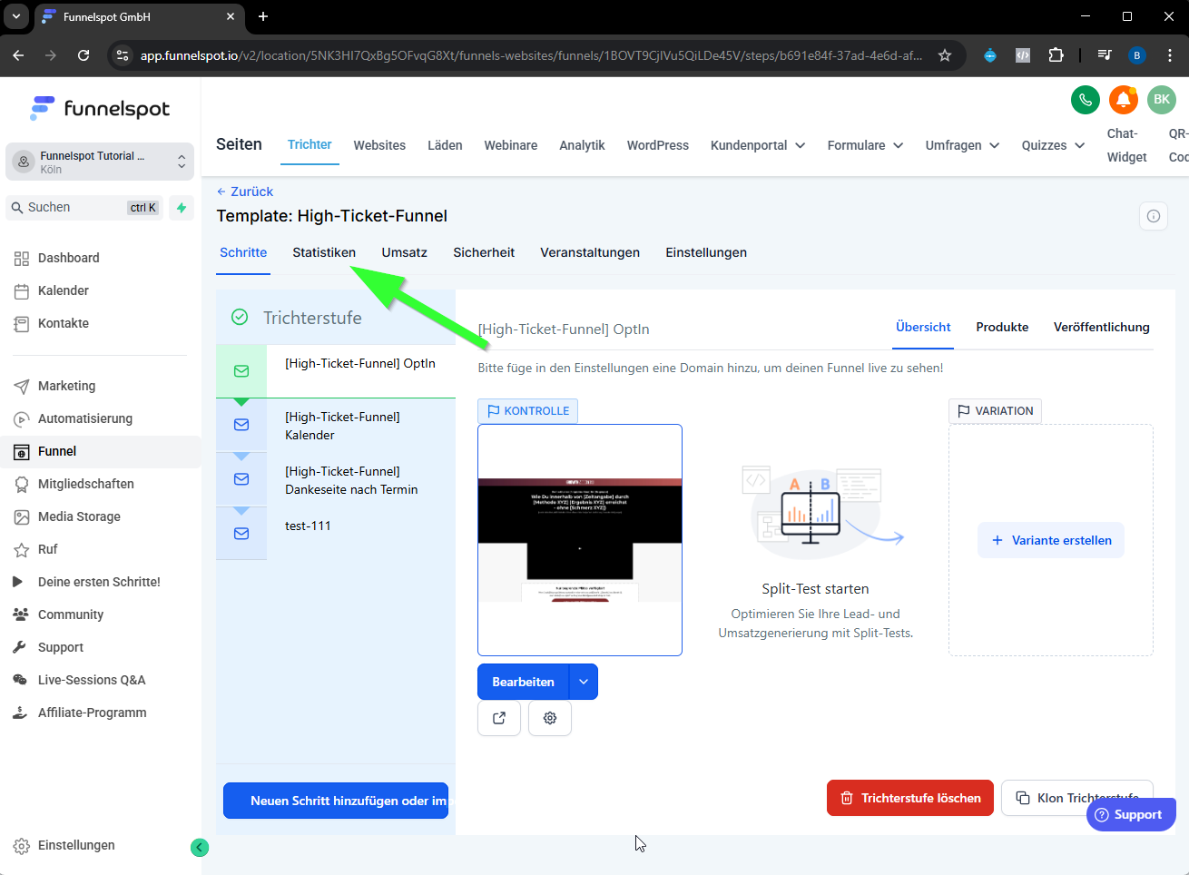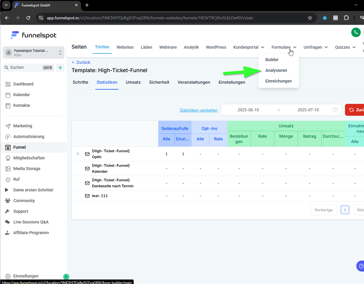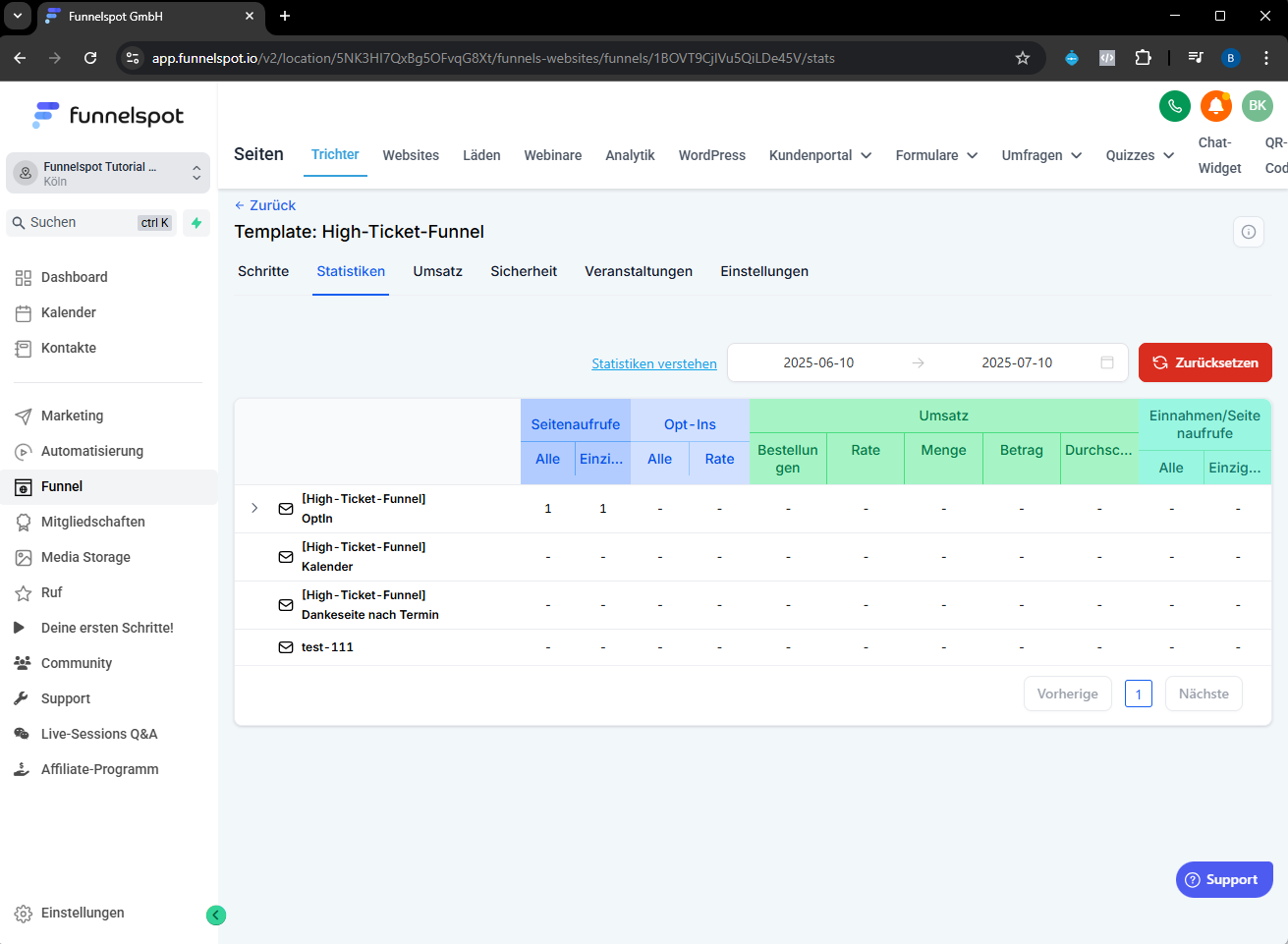 SOP: Funnel-Statistiken in Funnelspot auswerten