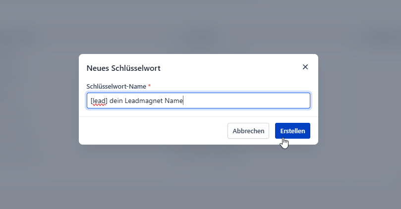 Klicke auf Neues Schlüsselwort hinzufügen.