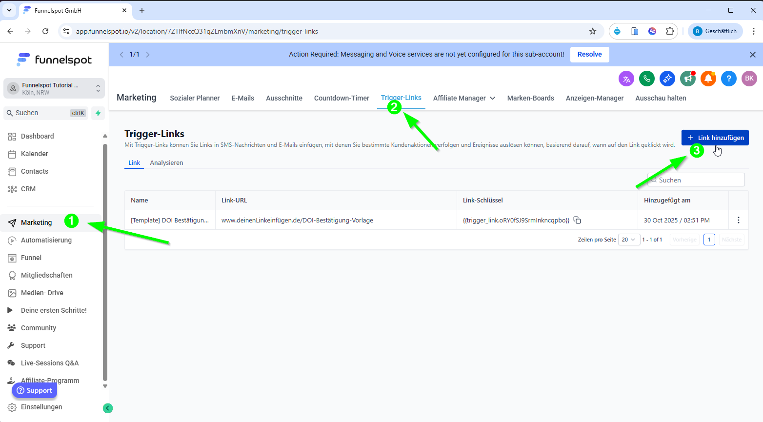 Gehe zu Marketing → Trigger-Links.
