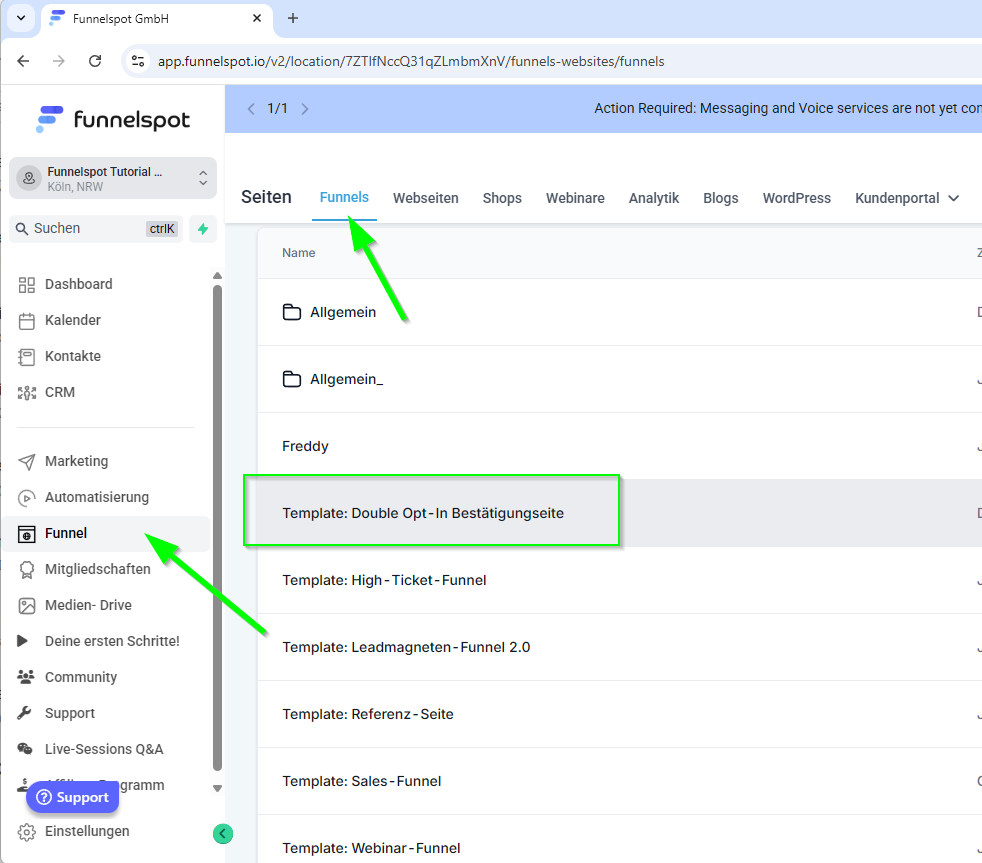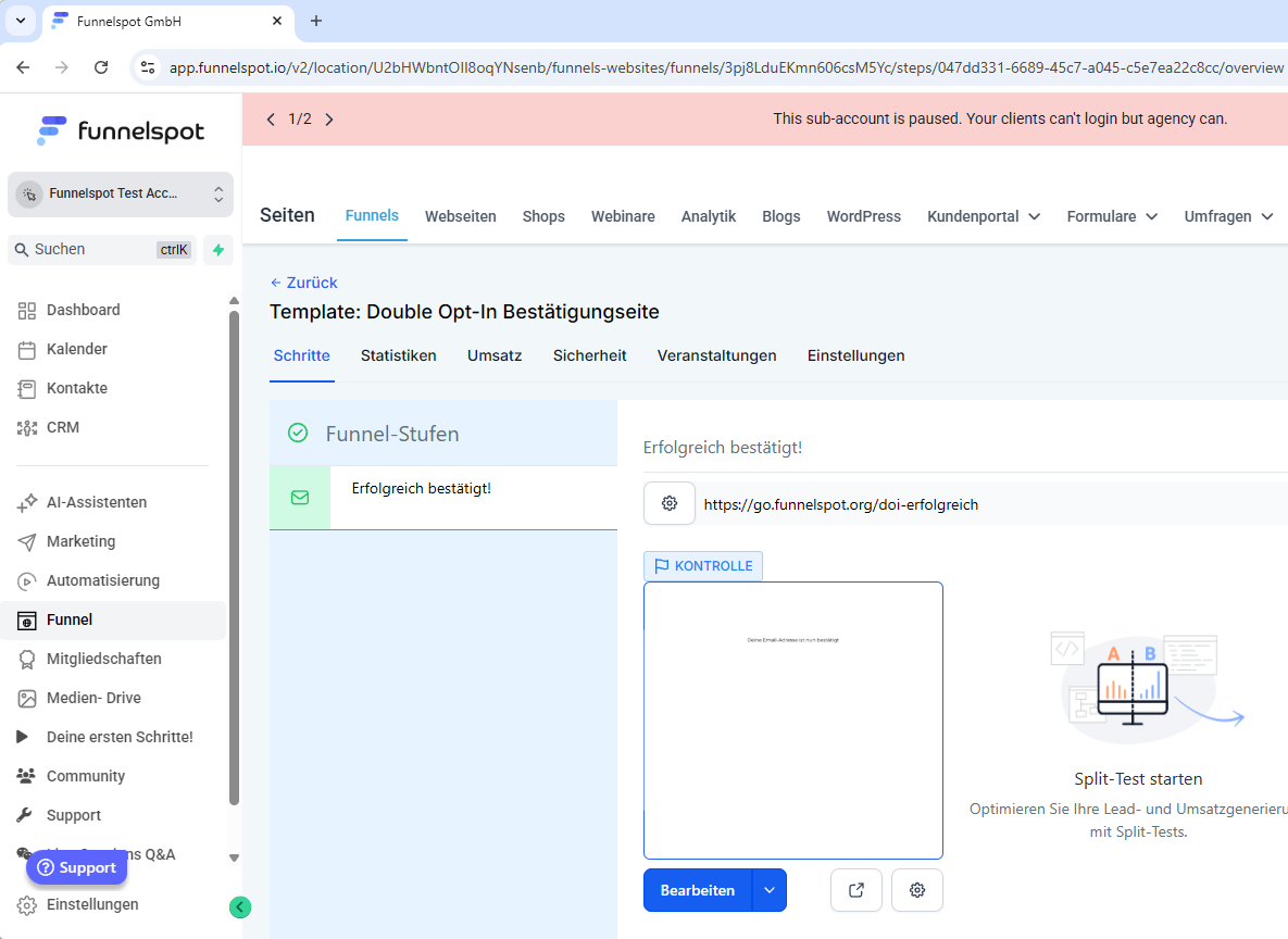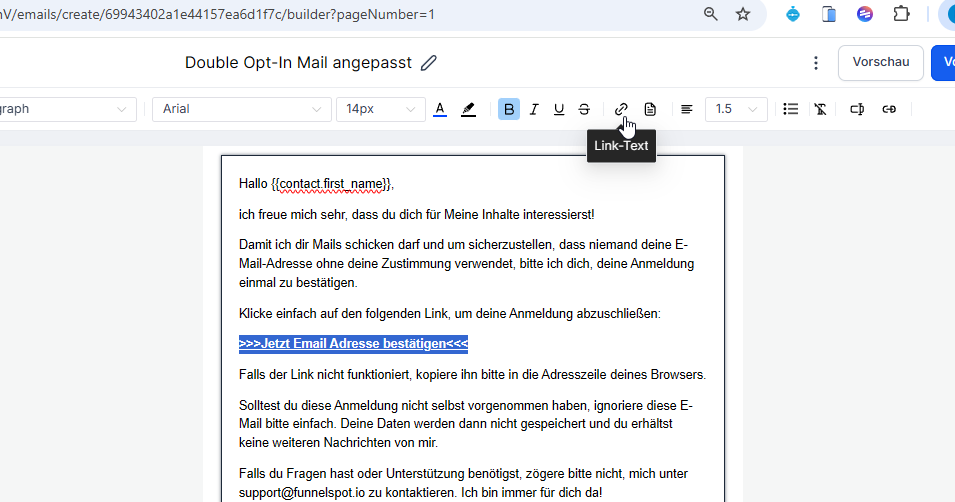 (Hierzu gibt es ein Template: Doube Opt-In Bestätigungsseite im Funnel bereich)