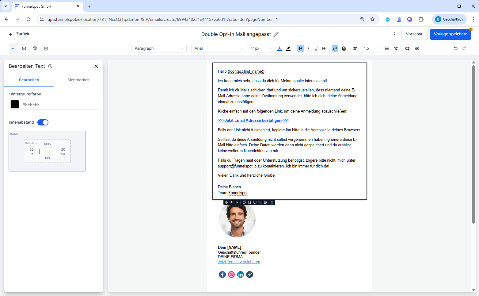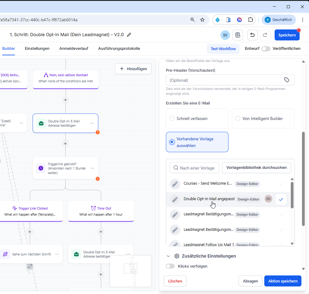 Ändere die Double-Opt-In: E-Mail zu deiner vorher erstellen Vorlage (an den 2x - bei denen die E-Mail verschickt wird).