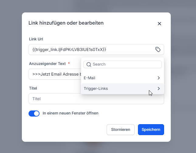 Trigger Link hinzufügen: