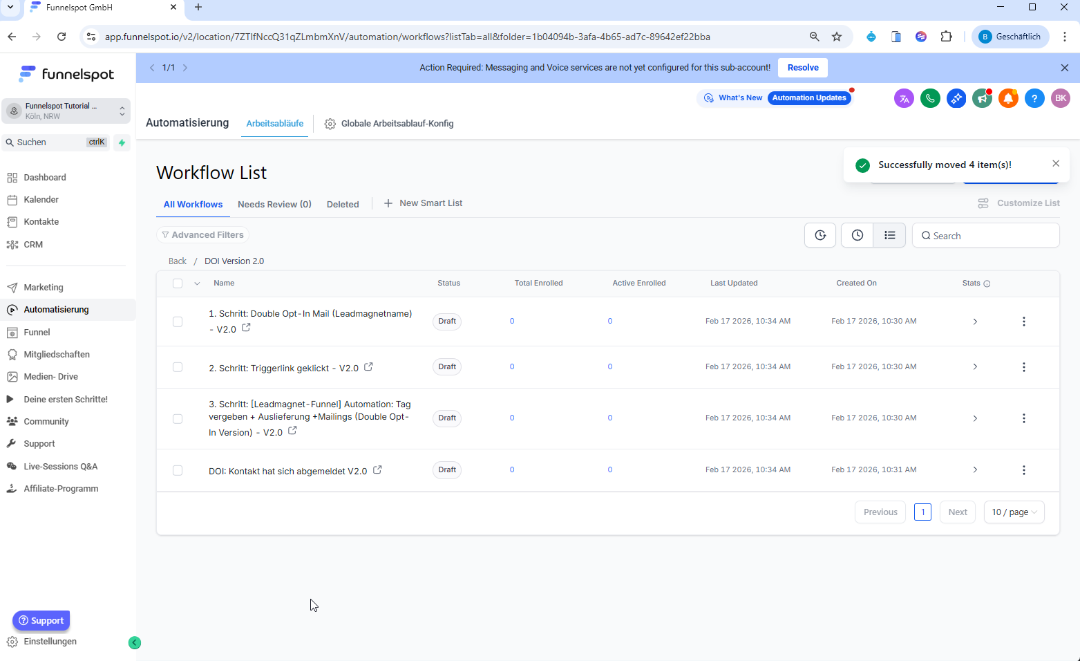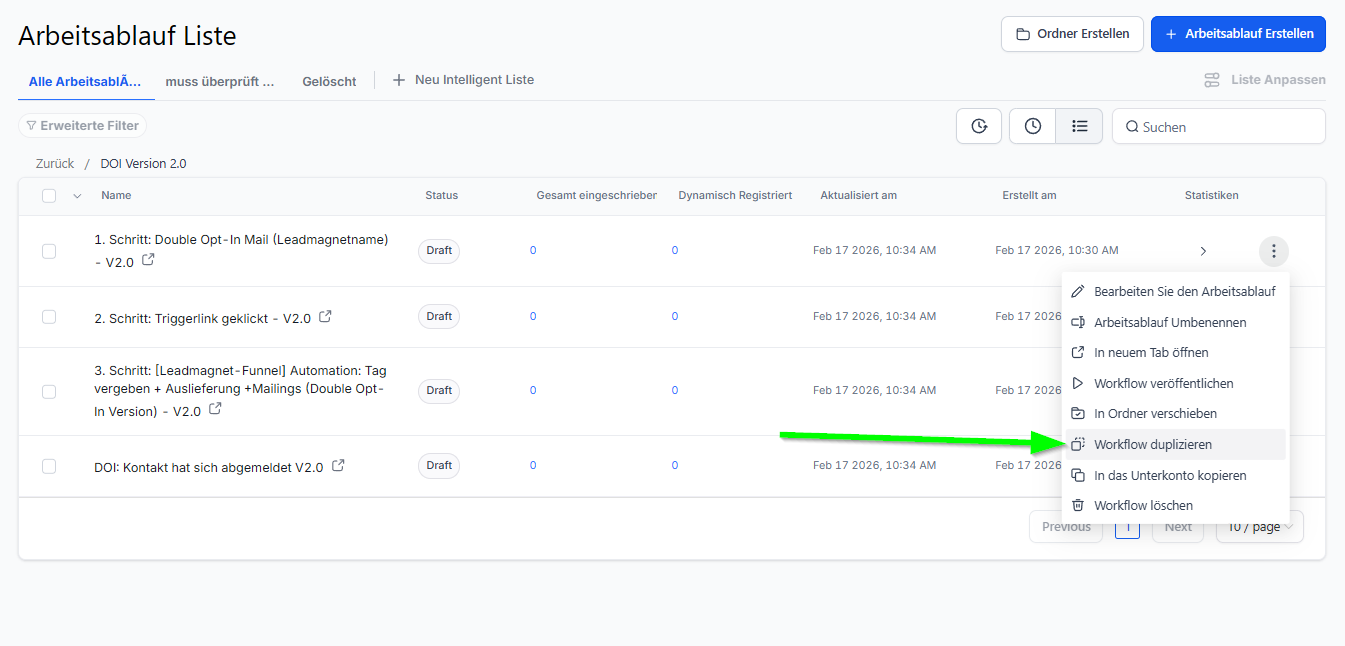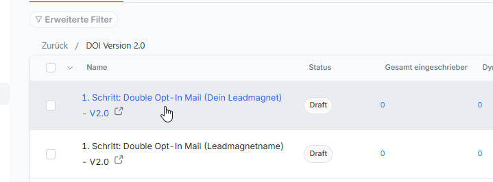 WICHTIG: Falls du NICHT "Double Opt-In (Version 2)" in deinem Funnelspot Account unter "Automation" stehen hast, sondern lediglich "Double Opt-In", dann melde dich bitte einmal unter support@funelspot.io mit dem Betreffe "DOI 2.0 Vorlage reinladen" und dann laden wir dir einmal die aktuelle Double Opt-InVorlage in deinen Funnelspot Account.