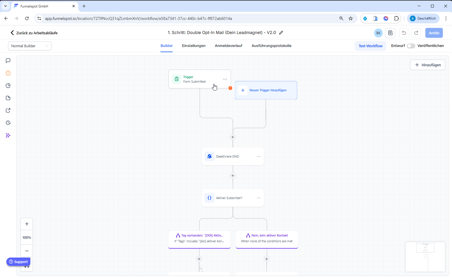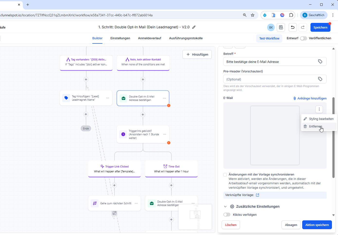 Diese SOP beschreibt, wie der Double-Opt-In-Prozess (DOI) in Funnelspot korrekt eingerichtet wird, damit Leads ihre E-Mail-Adresse bestätigen und automatisiert weiterverarbeitet werden.