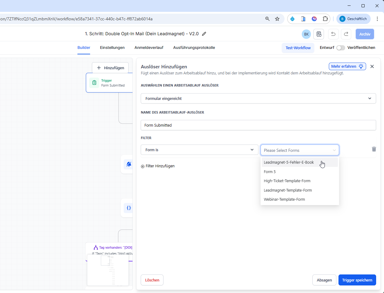 Wähle als Trigger das entsprechende Formular.