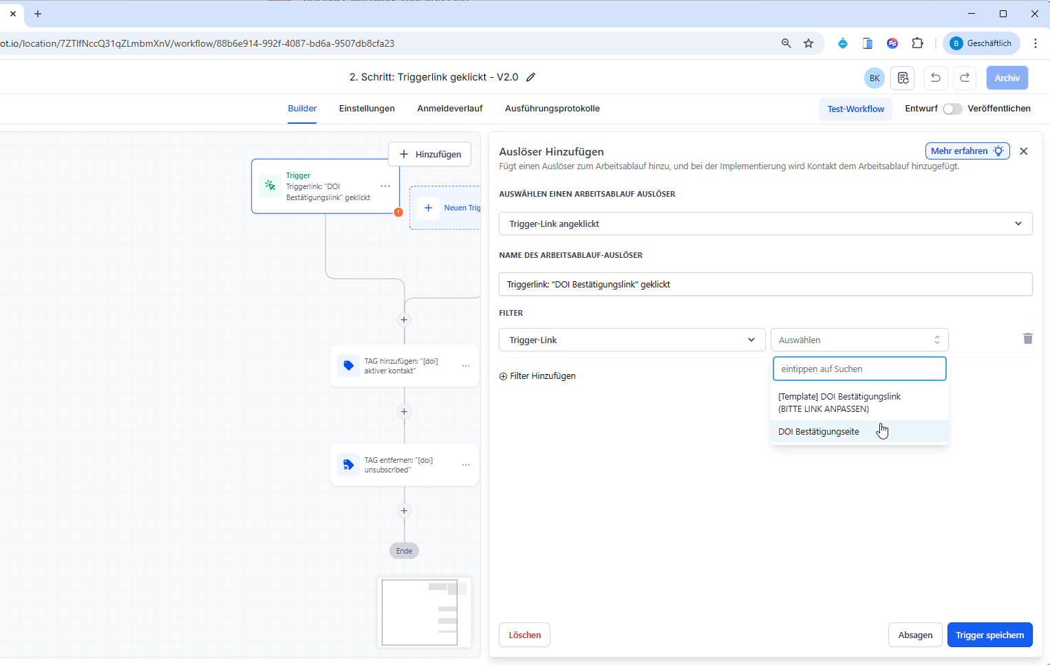 Schritt 2 (Trigger-Link-Bestätigung)
