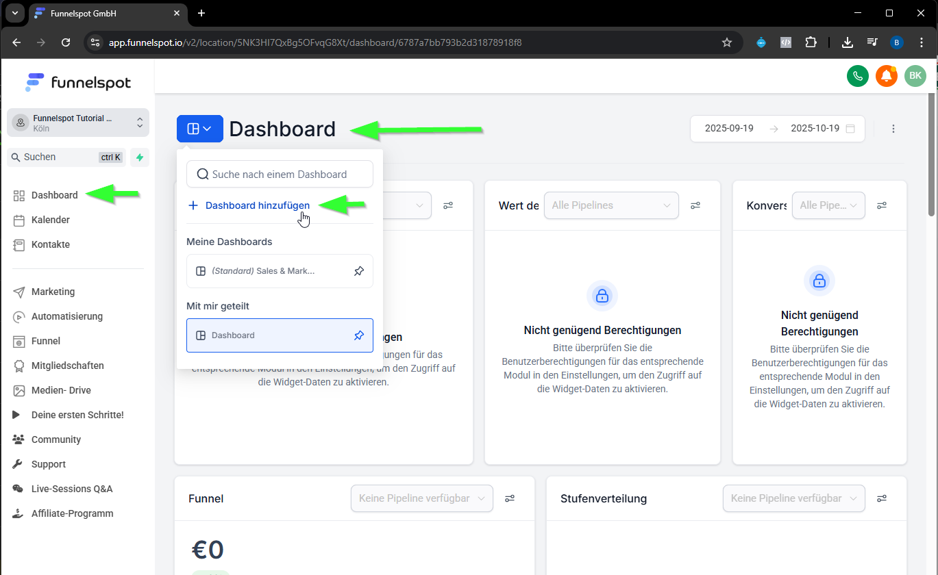 SOP: Dashboards in Funnelspot erstellen und anpassen