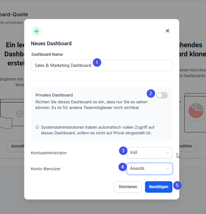 Namen vergeben (z. B. „Sales & Marketing Dashboard“).
