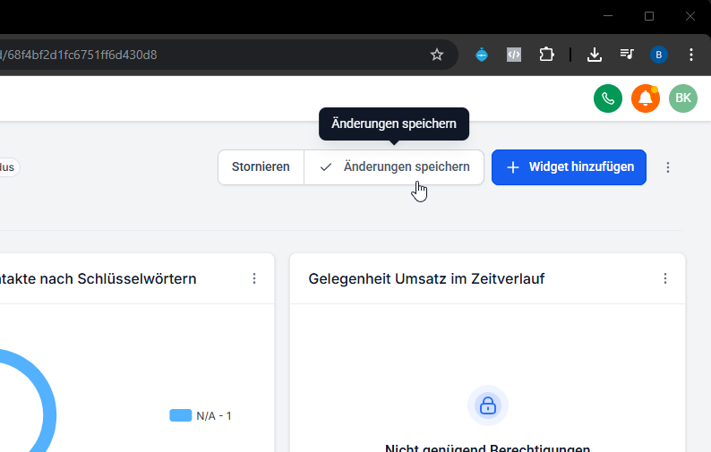 Mit Stift-Icon Feinjustierung vornehmen (Widgets umsortieren, Größe ändern, Filter setzen).