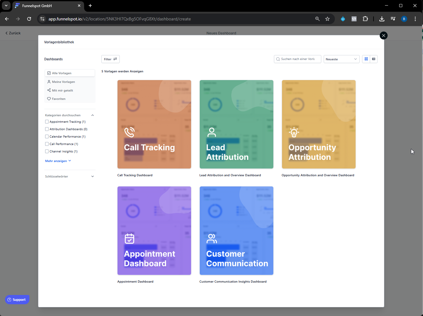 In Funnelspot zu „Dashboard“ wechseln.