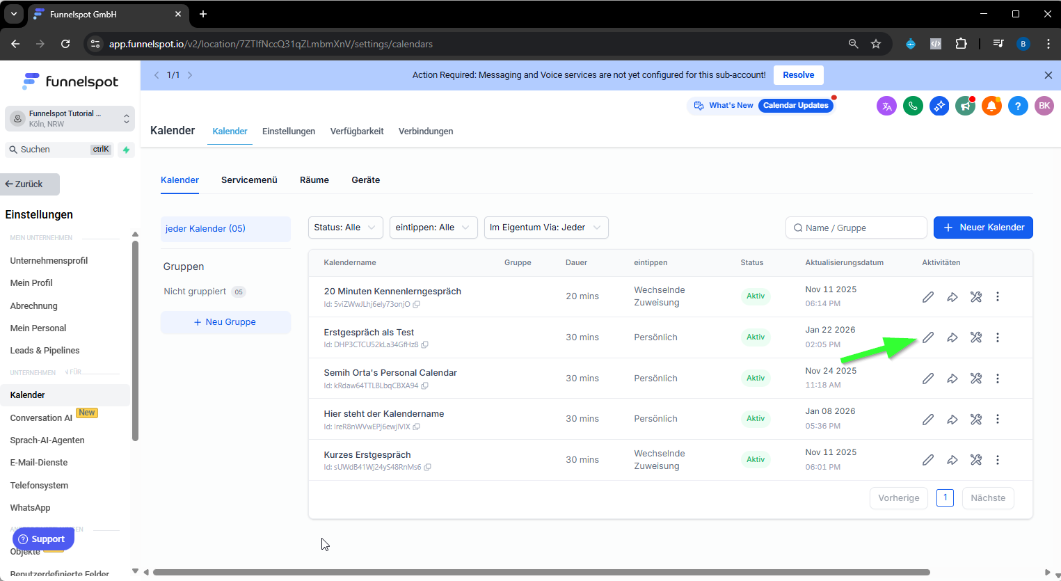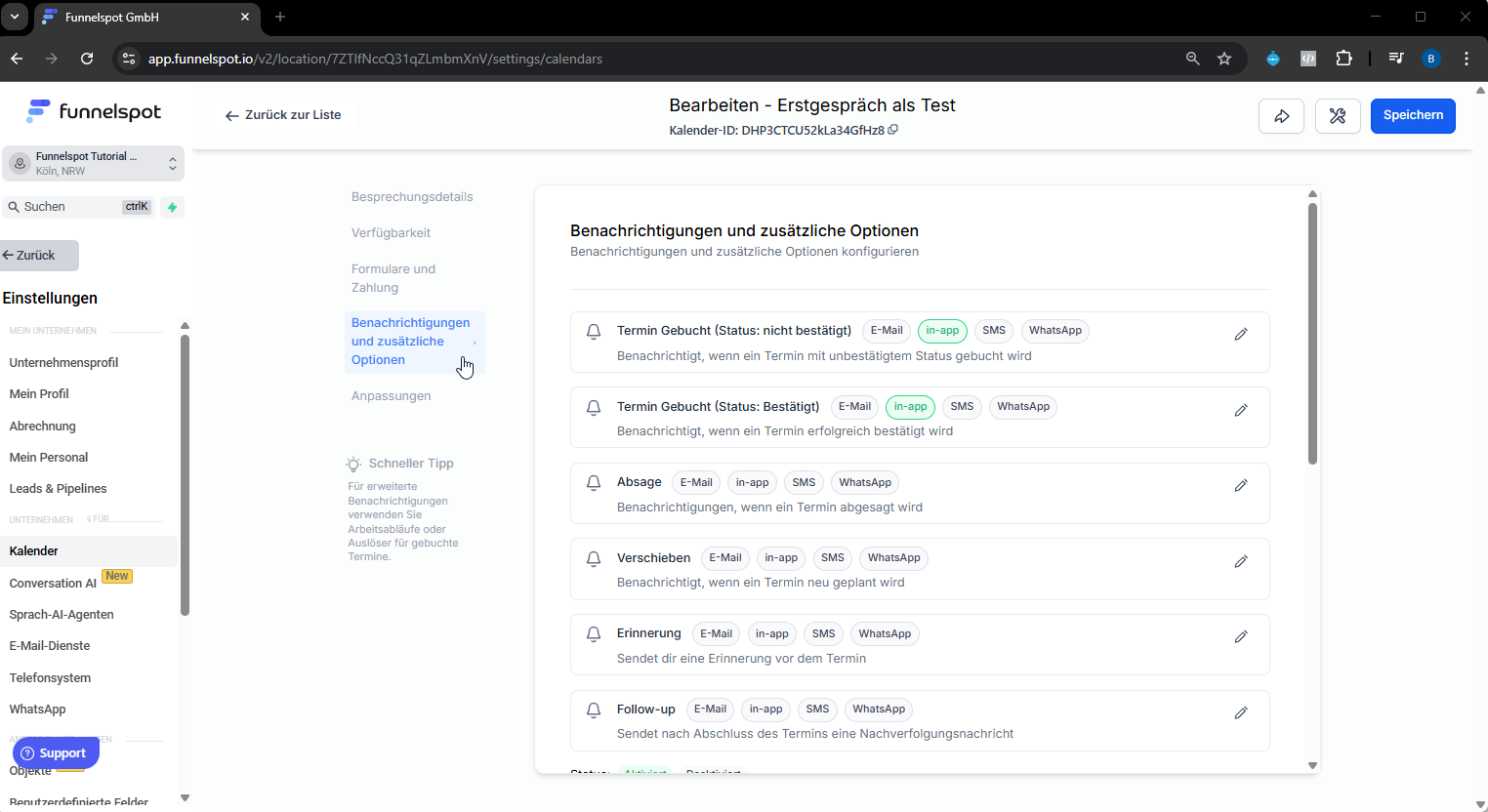 SOP: Termin-Benachrichtigungen (Reminder & Status-E-Mails) im Funnelspot-Kalender einrichten