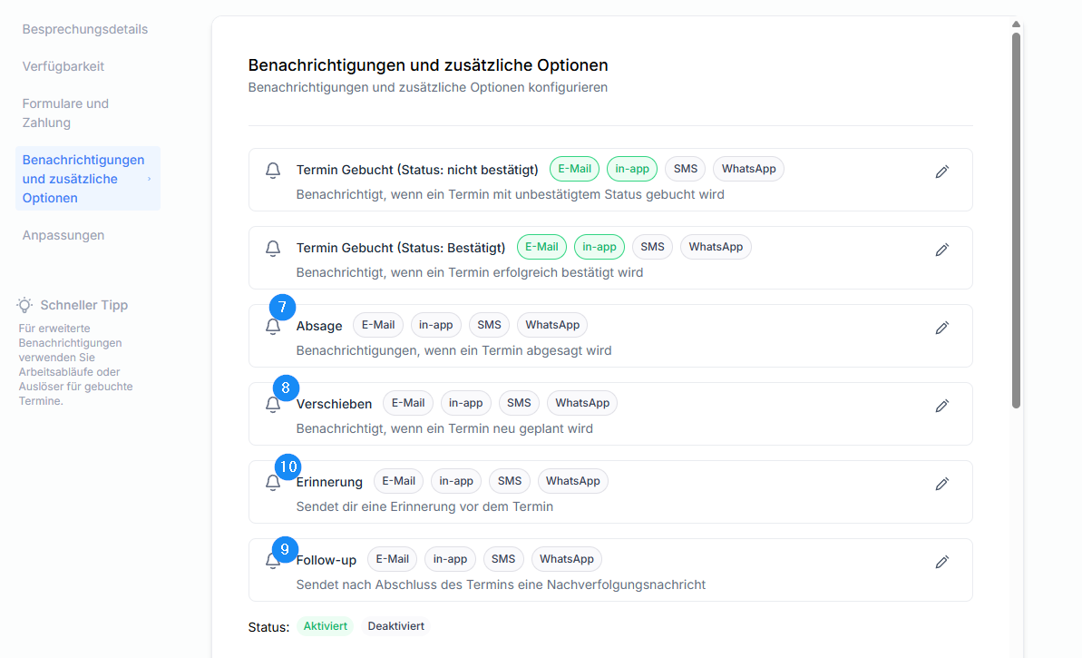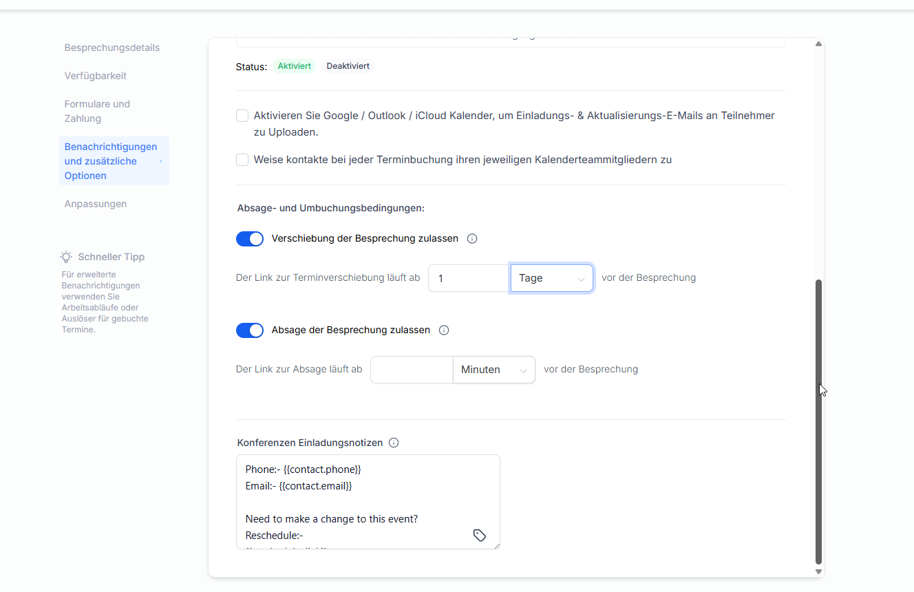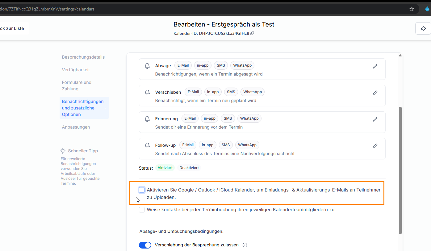 Aktiviere Absagefunktionen trotzdem, um No-Shows zu vermeiden.
