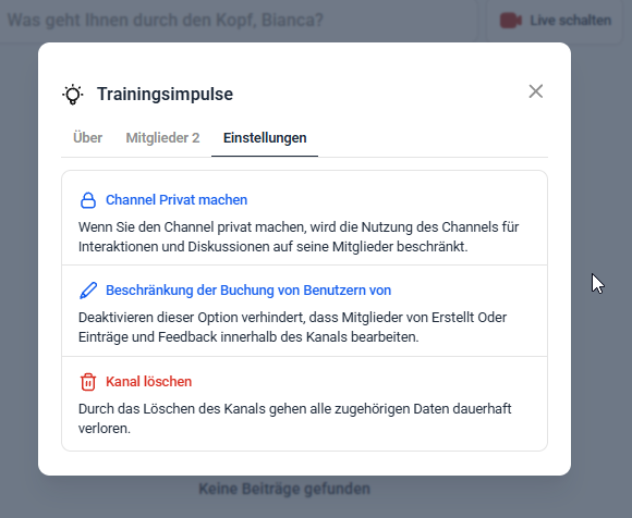 Mitglieder können je nach Channel dort posten und diskutieren.