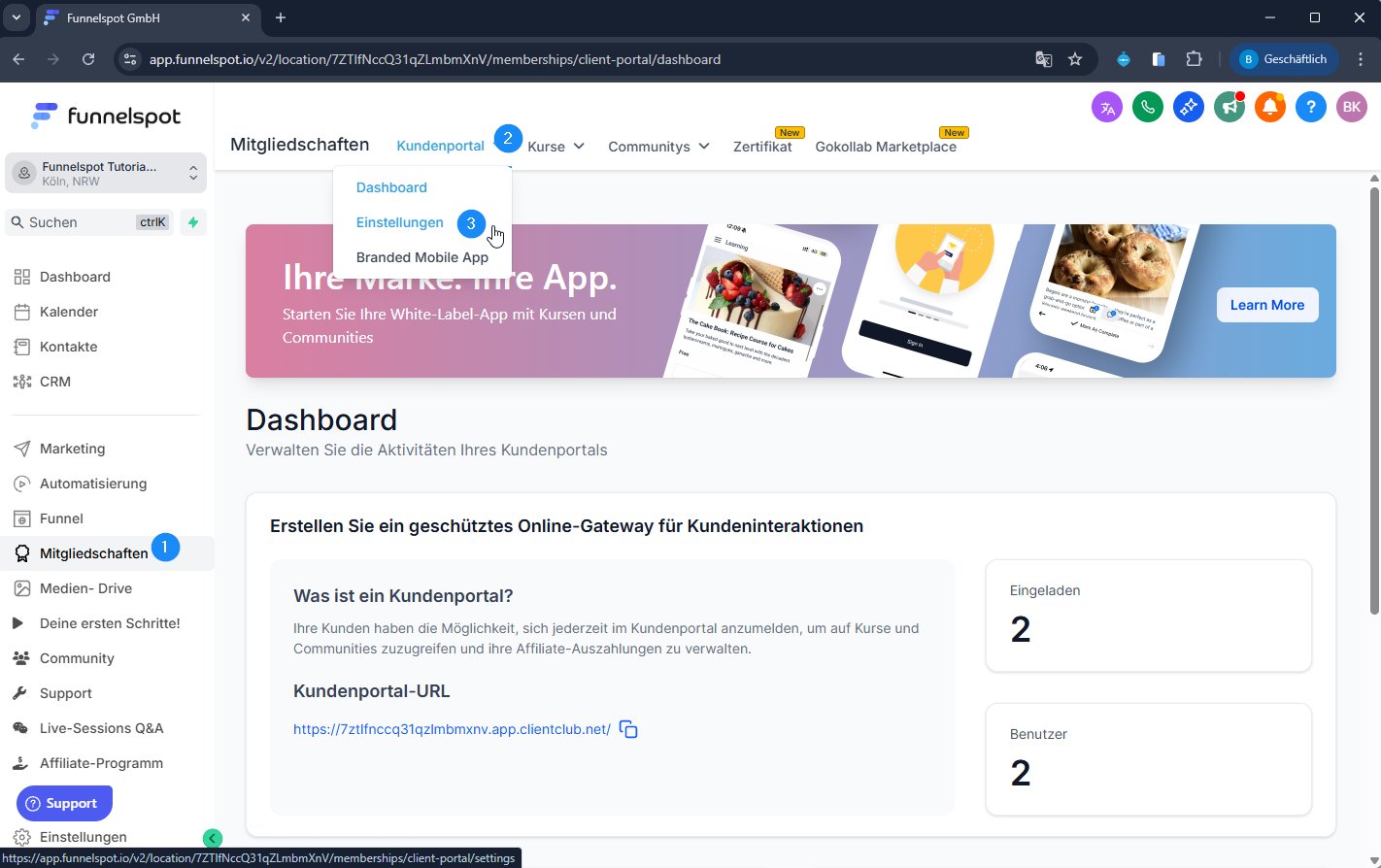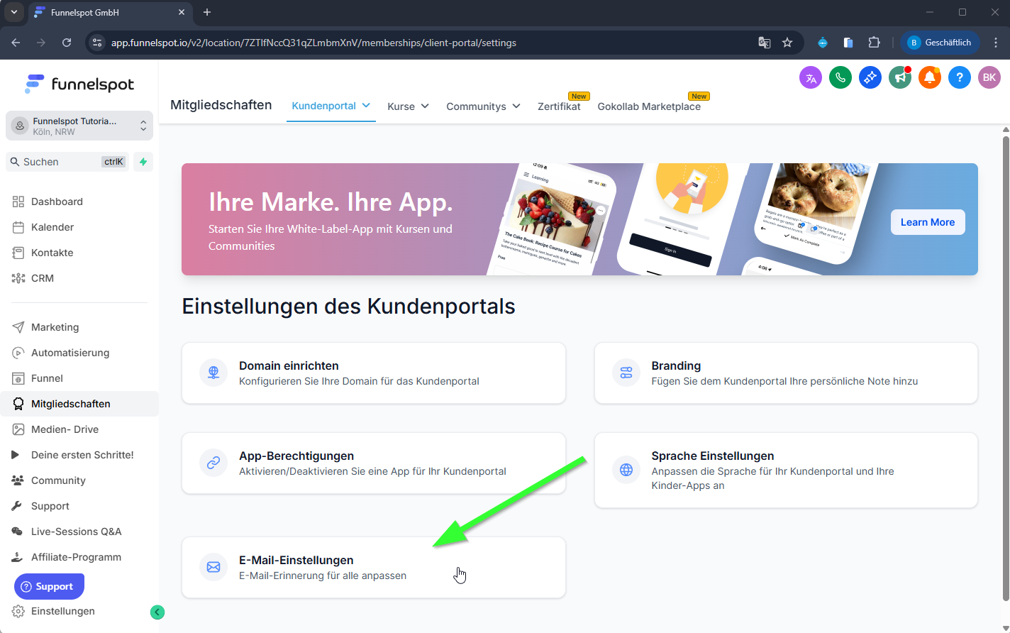 Logge dich in Funnelspot ein.