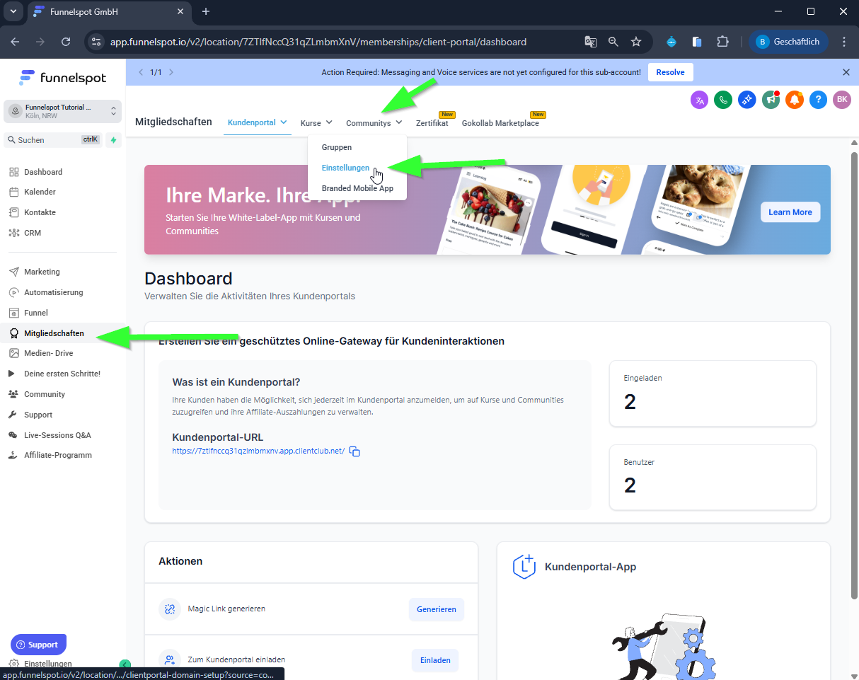 Keine Funnelspot-Standard-URL mehr sichtbar
