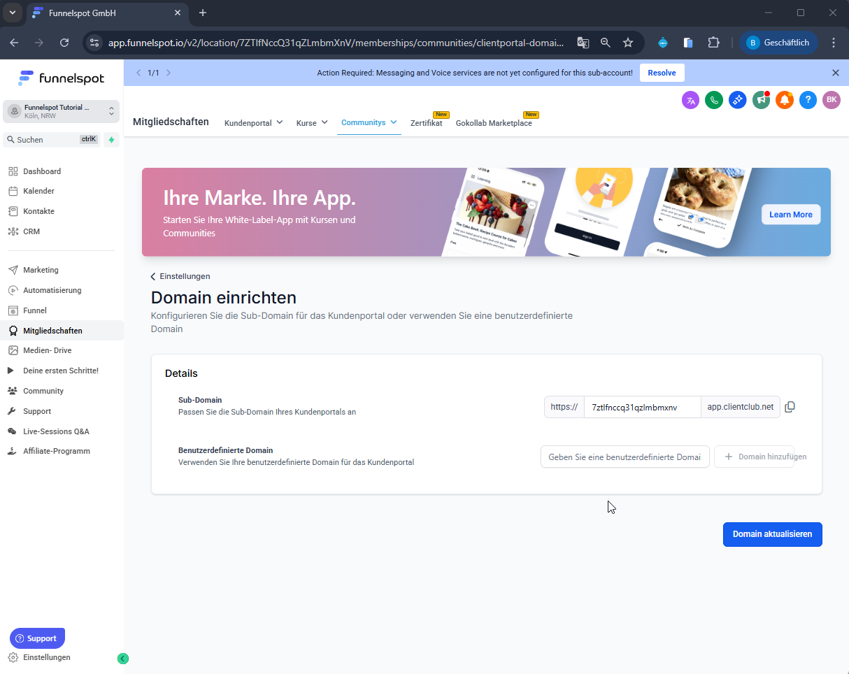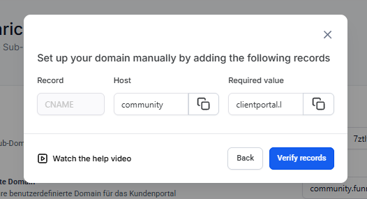 Diese SOP beschreibt, wie du deine eigene Domain oder Subdomain mit deiner Community verbindest, sodass die Community nicht mehr unter einer Standard-URL (z. B. app.…) läuft, sondern unter deiner eigenen Domain.