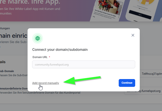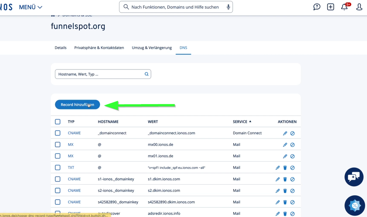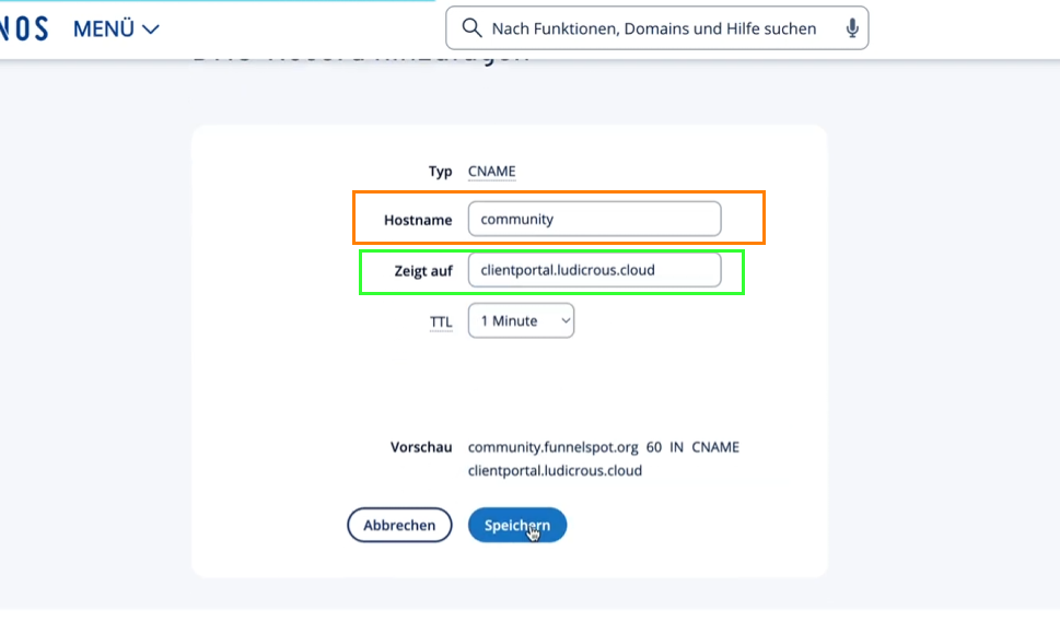 community)Ziel / Wert: den von Funnelspot bereitgestellten CNAME-Wert