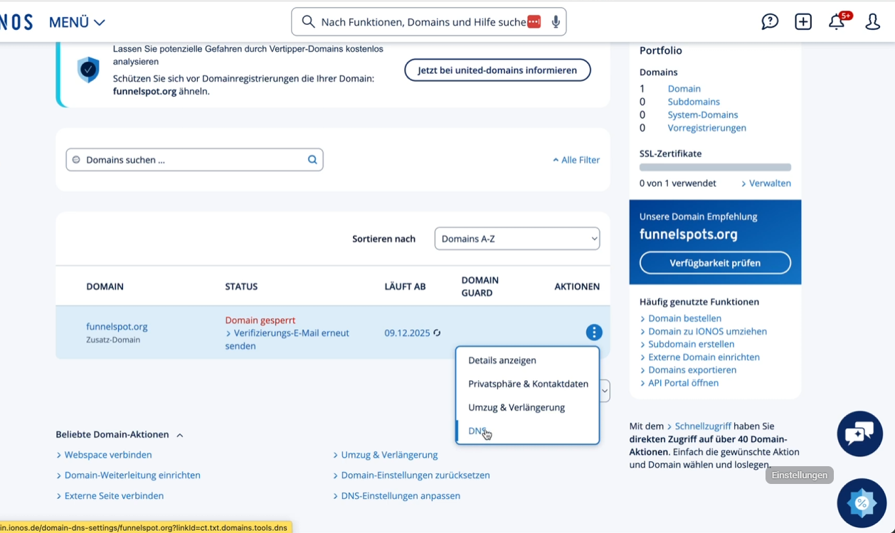 Öffne das Backend deines Domain-Providers (z. B. IONOS).