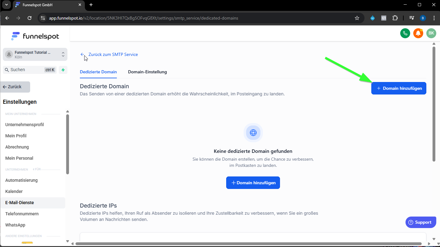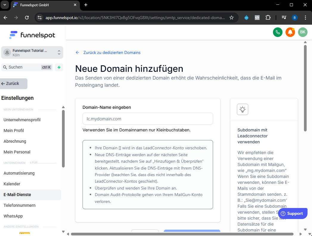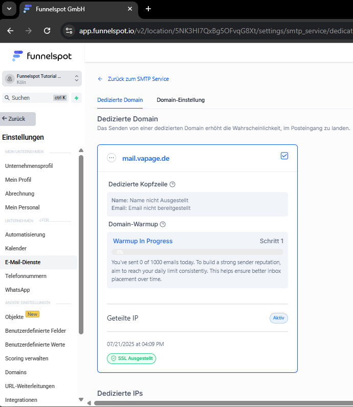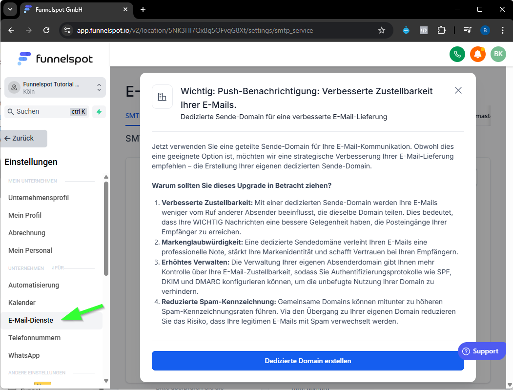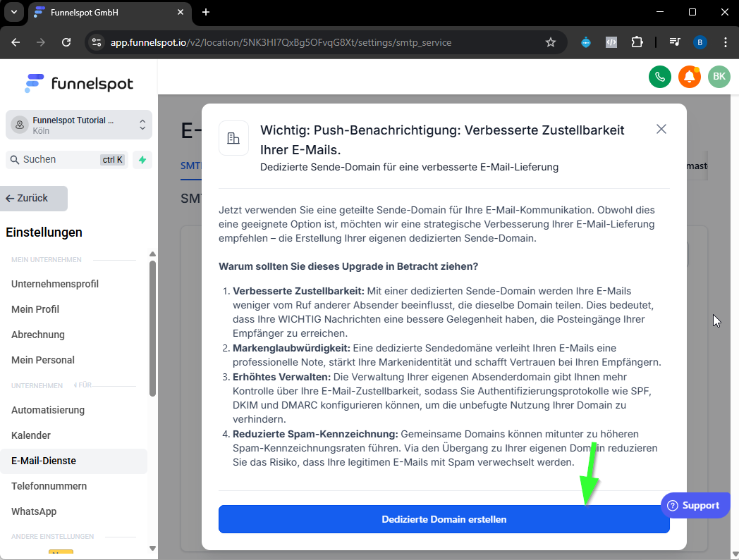 SOP: E-Mail-Zustellbarkeit sicherstellen – dedizierte E-Mail-Domain in Funnelsport verknüpfen