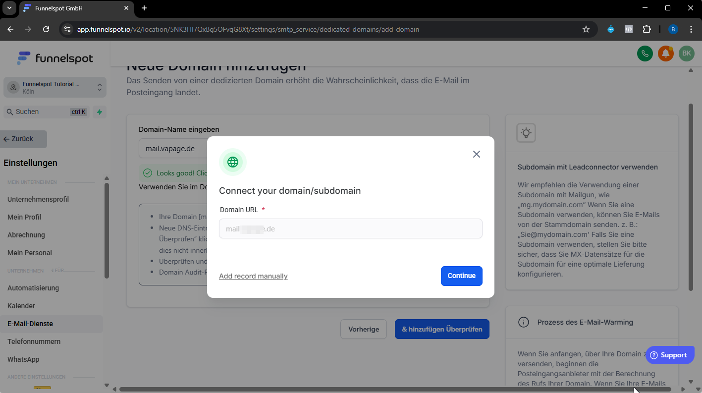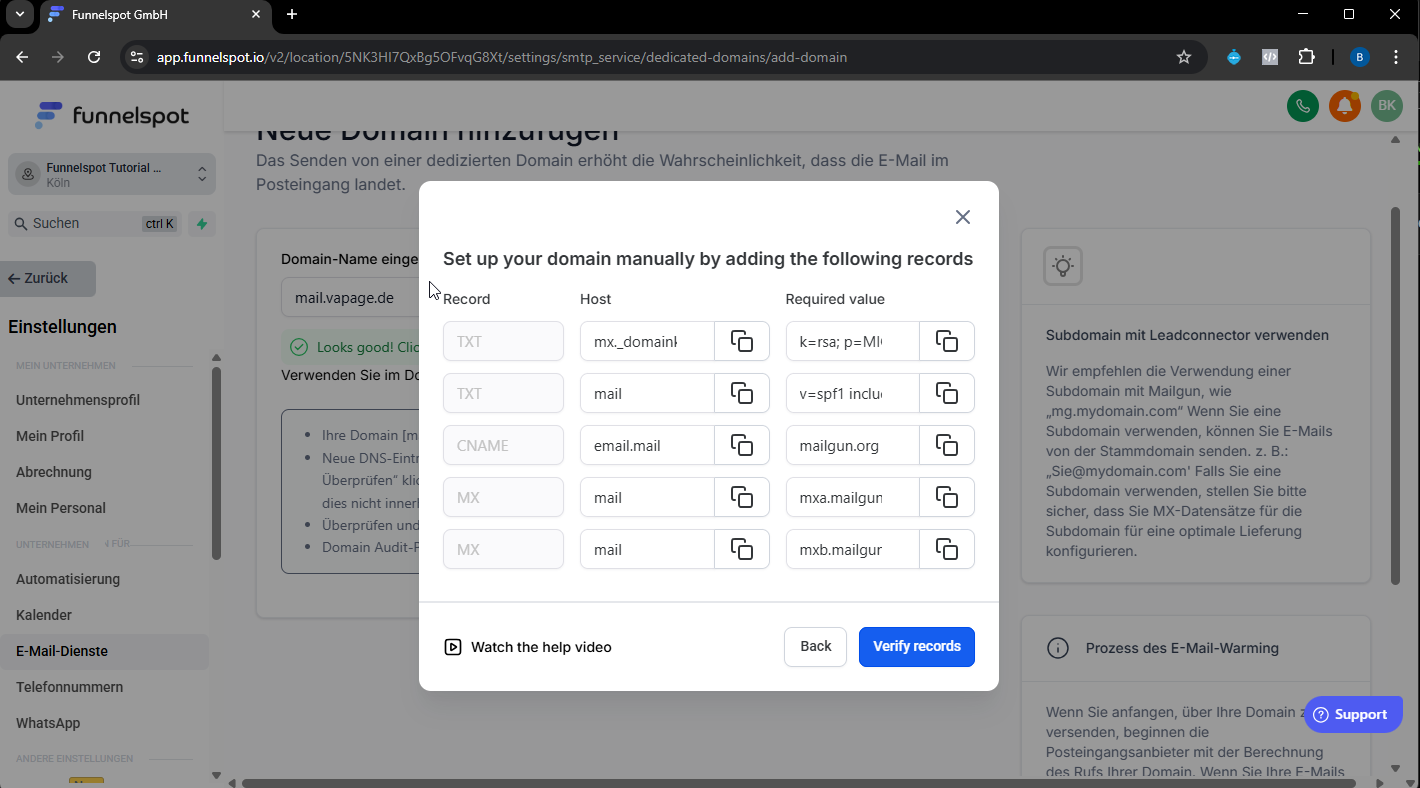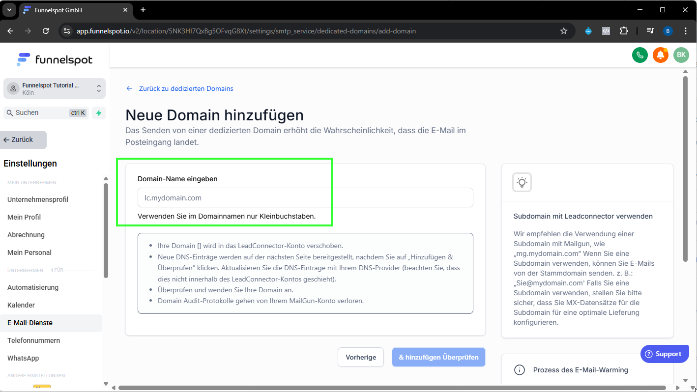 Diese Anleitung zeigt dir, wie du eine Subdomain für den E-Mail-Versand in Funnelsport korrekt einrichtest. So stellst du sicher, dass deine Mails nicht im Spam landen, sondern zuverlässig beim Empfänger ankommen.