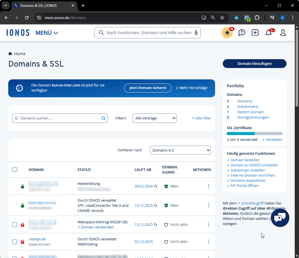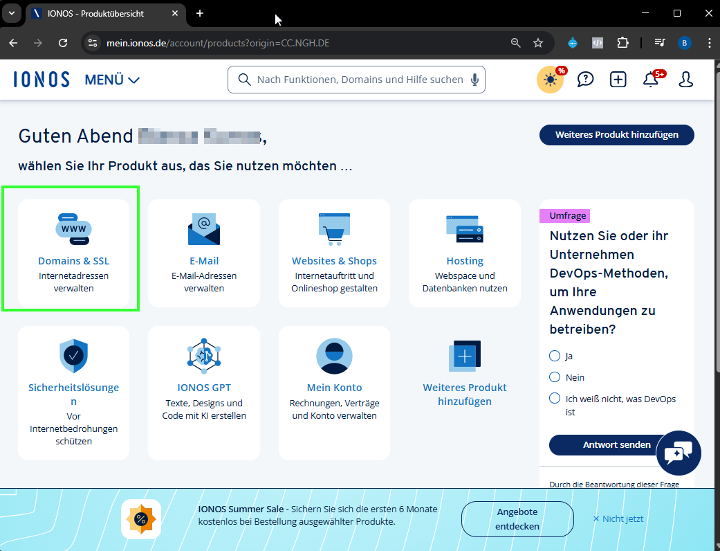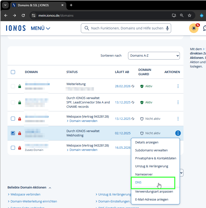 5. Wechsel zu deinem Domainanbieter (z. B. IONOS)