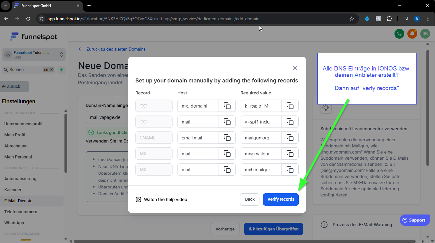 Klicke nach dem Hinzufügen aller Records auf „Aufzeichnung verifizieren“ / "Verify Records"