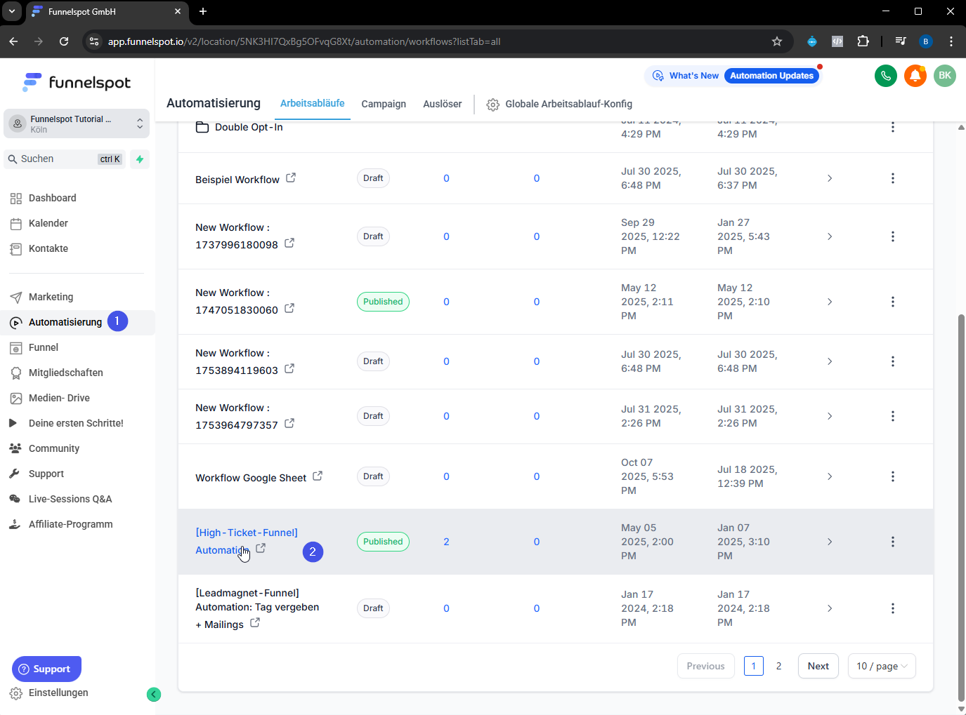 Wähle die Automation aus (z. B. [High Ticket Funnel] Automation).