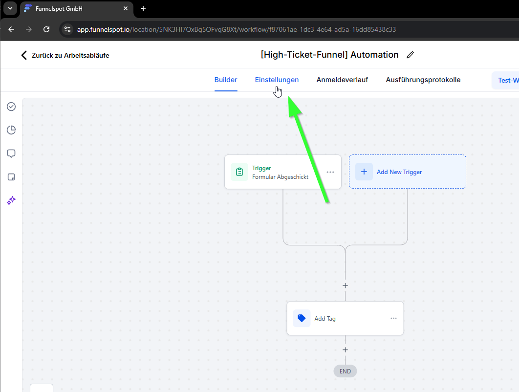 Öffne in Funnelspot die gewünschte Automation.