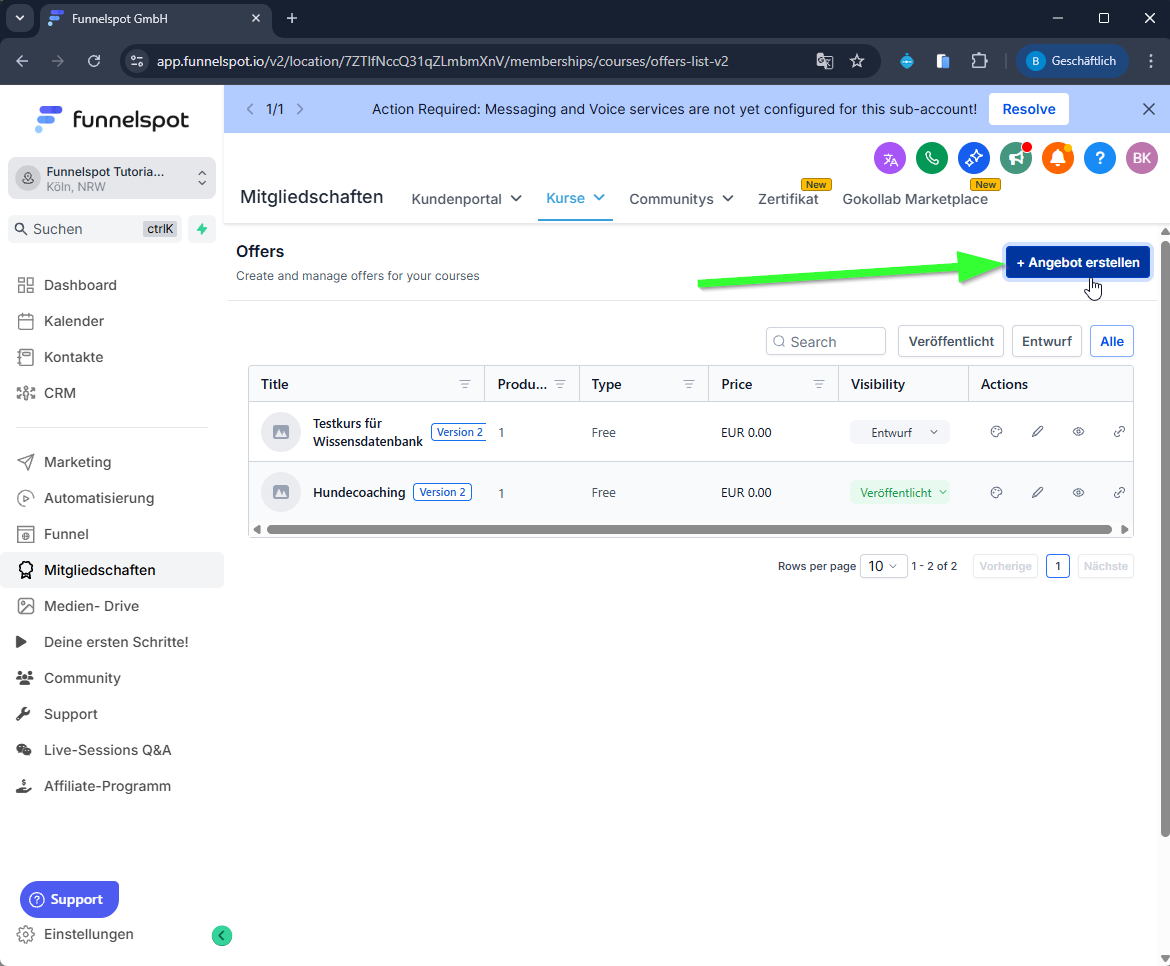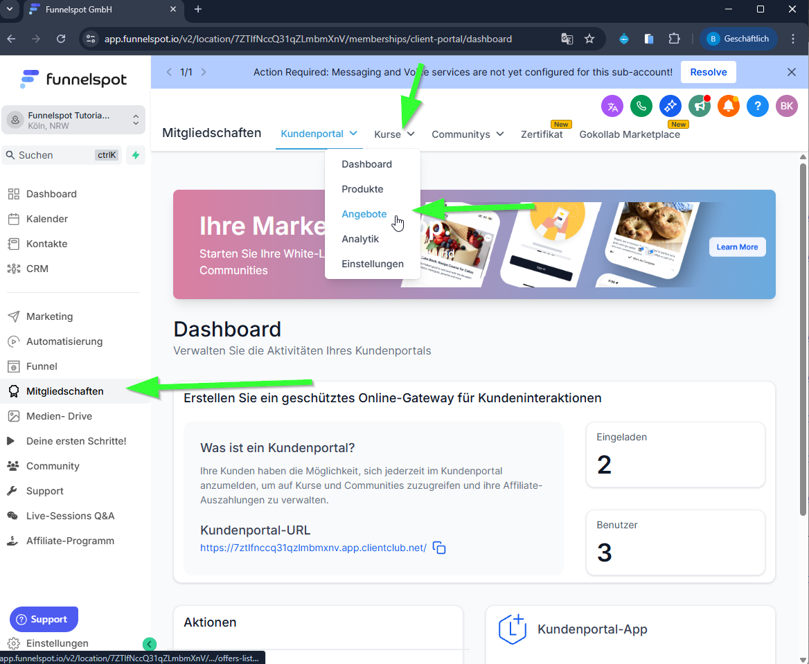 SOP: Kurszugang für Mitglieder in Funnelspot freigeben