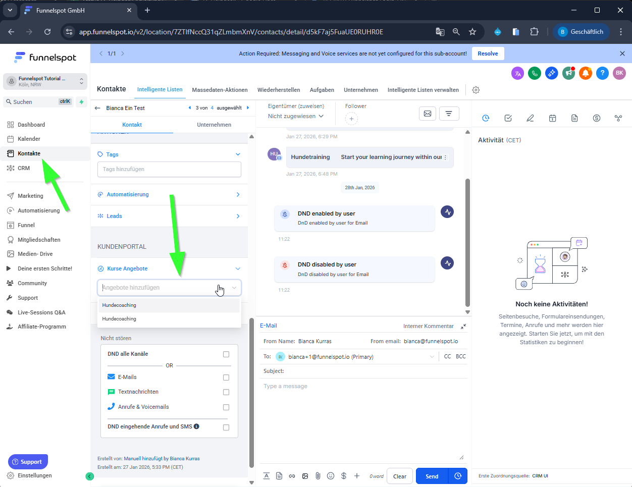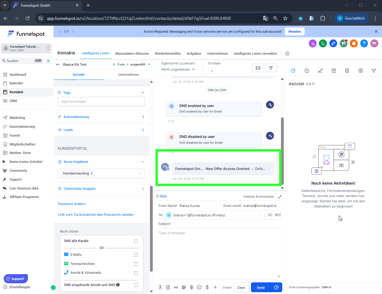 Der Kontakt erhält automatisch die Willkommens-E-Mail mit Login-Zugang.