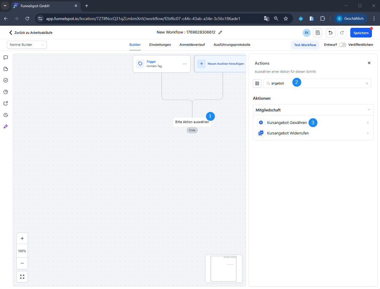 Sobald der Trigger ausgelöst wird (z. B. Tag durch Kauf), erhält der Kontakt automatisch Zugriff auf den Kurs.