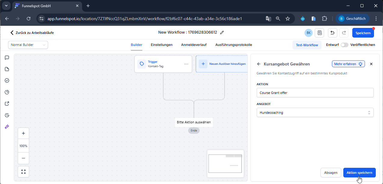 Speichere die Aktion.