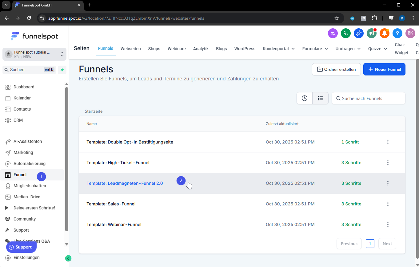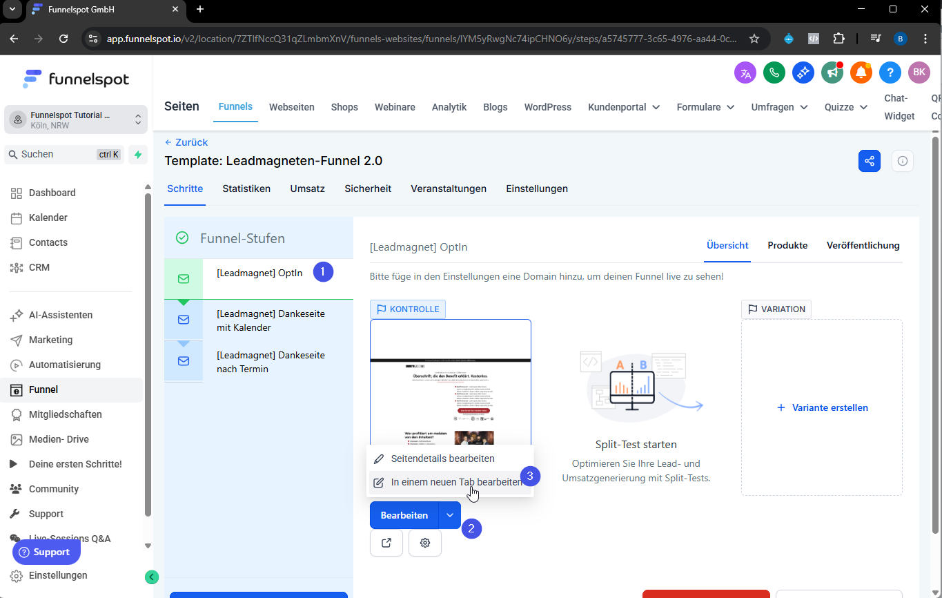 Gehe zu "Funnel" und wähle den Funnel aus, den du bearbeiten möchtest.
