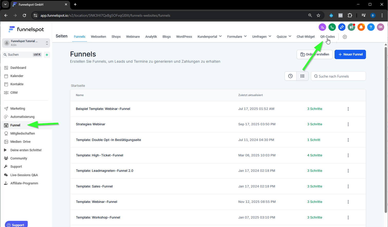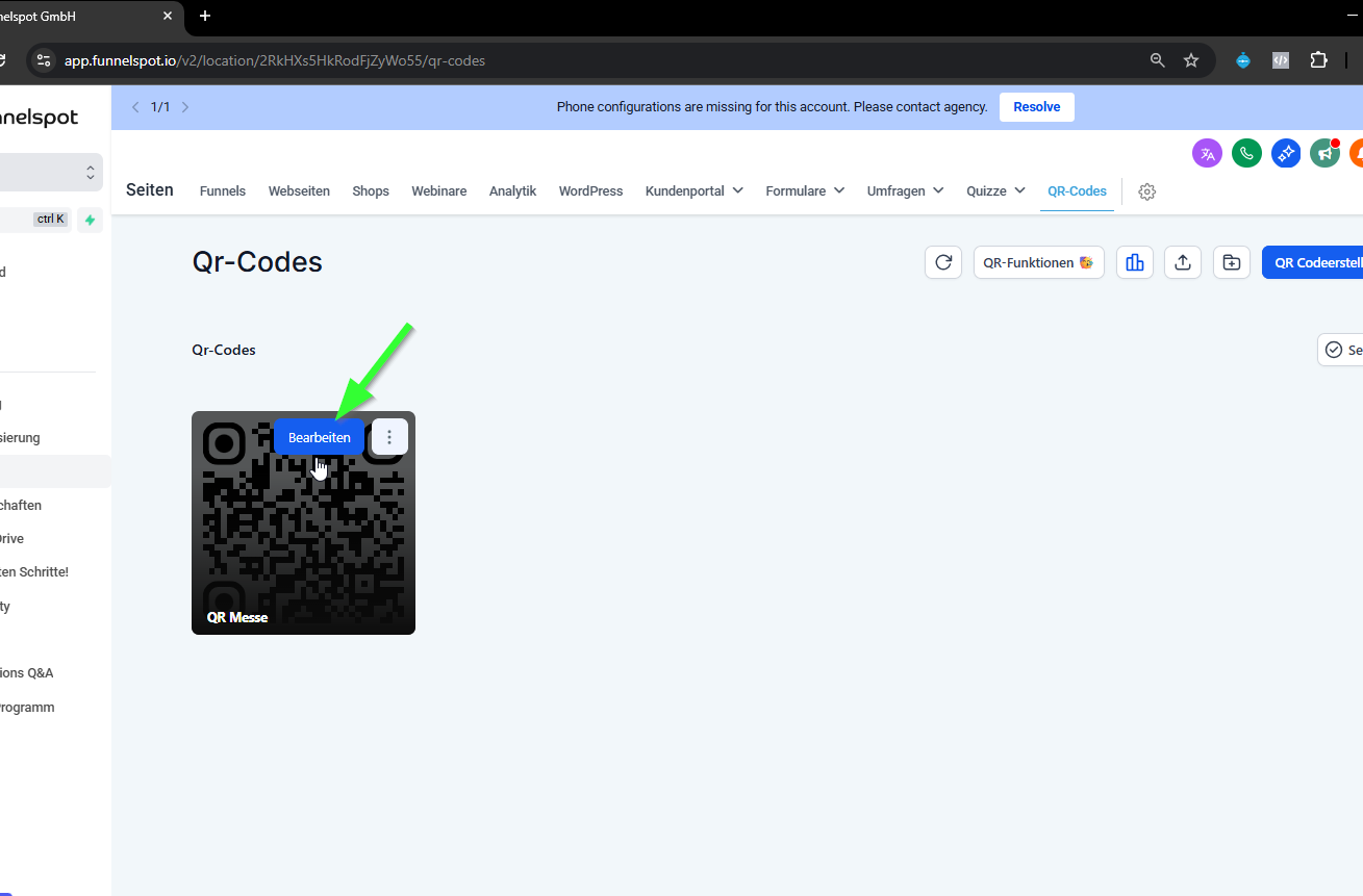 Öffne den erstellten QR-Code im Funnelspot-Dashboard.