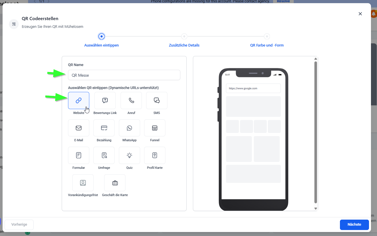 Wähle den QR-Code-Typ aus: