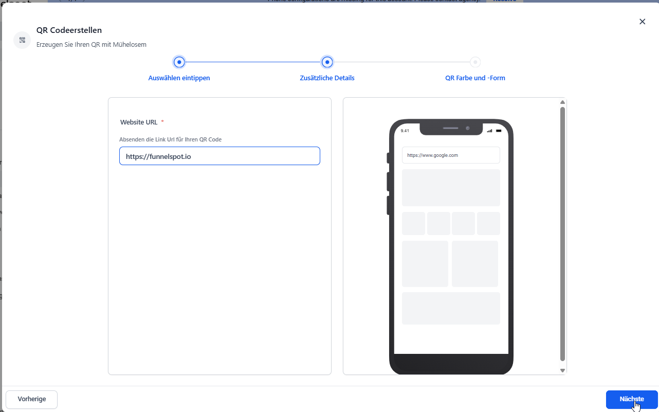 Funnelspot bietet verschiedene Gestaltungsoptionen für QR-Codes: