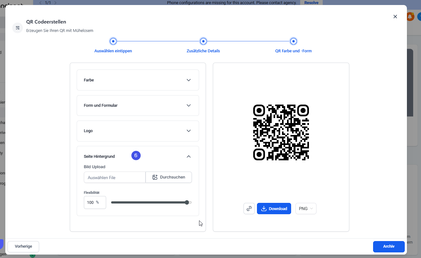 | Hintergrundbild (6) | Optionales Bild hinter dem QR-Code (nicht empfohlen, kann Lesbarkeit beeinträchtigen) |